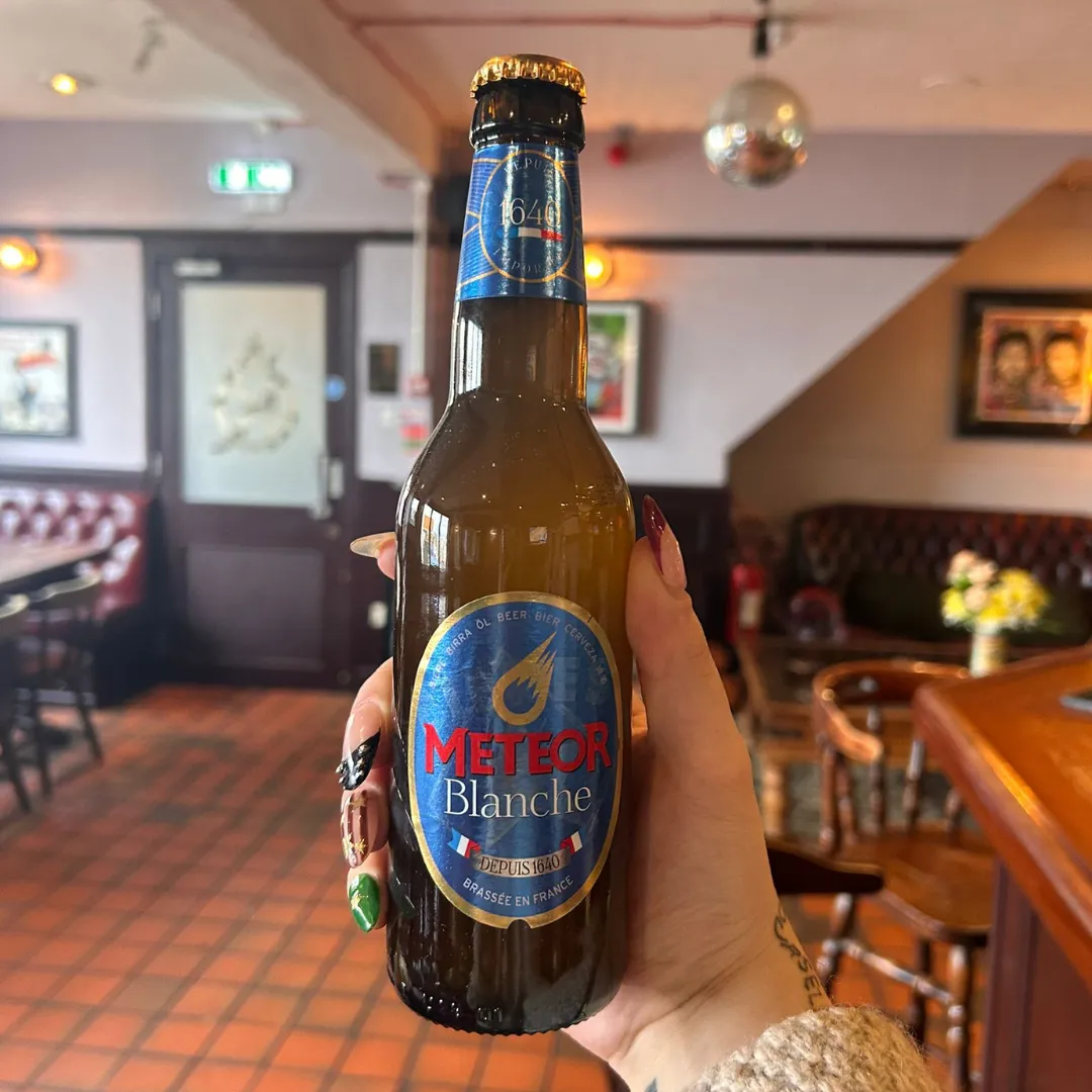 From the Alsace region (Hochfelden), Brasserie Meteor serves up Meteor Blanche - a bright, cloudy French wheat beer that’s all about freshness and easy drinking charm. Expect soft wheat, a little citrus lift and a subtle spiced edge (think gentle coriander/lemon vibes rather than anything heavy). Crisp, lightly zesty and satisfyingly “one more glass” material.